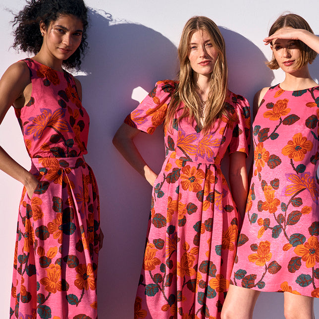 Hier kommt unsere Frühlingskollektion. Jetzt kommen die schönen Oberteile, Kleider und Leinenanzüge zum Einsatz. Freude lädt.