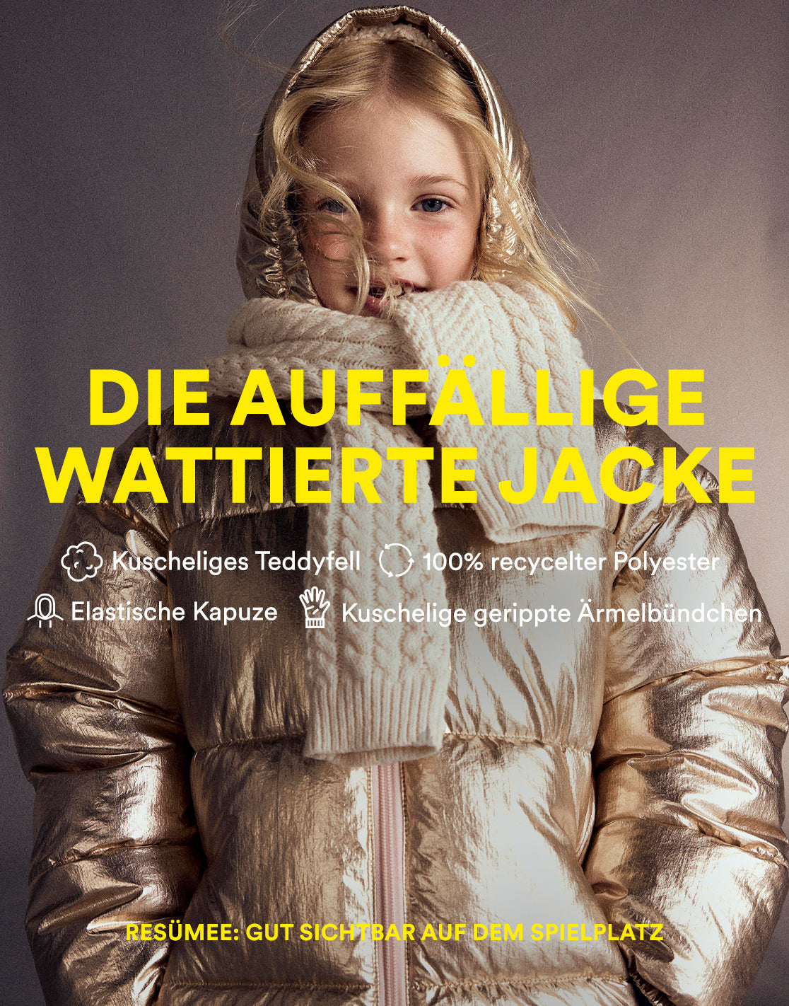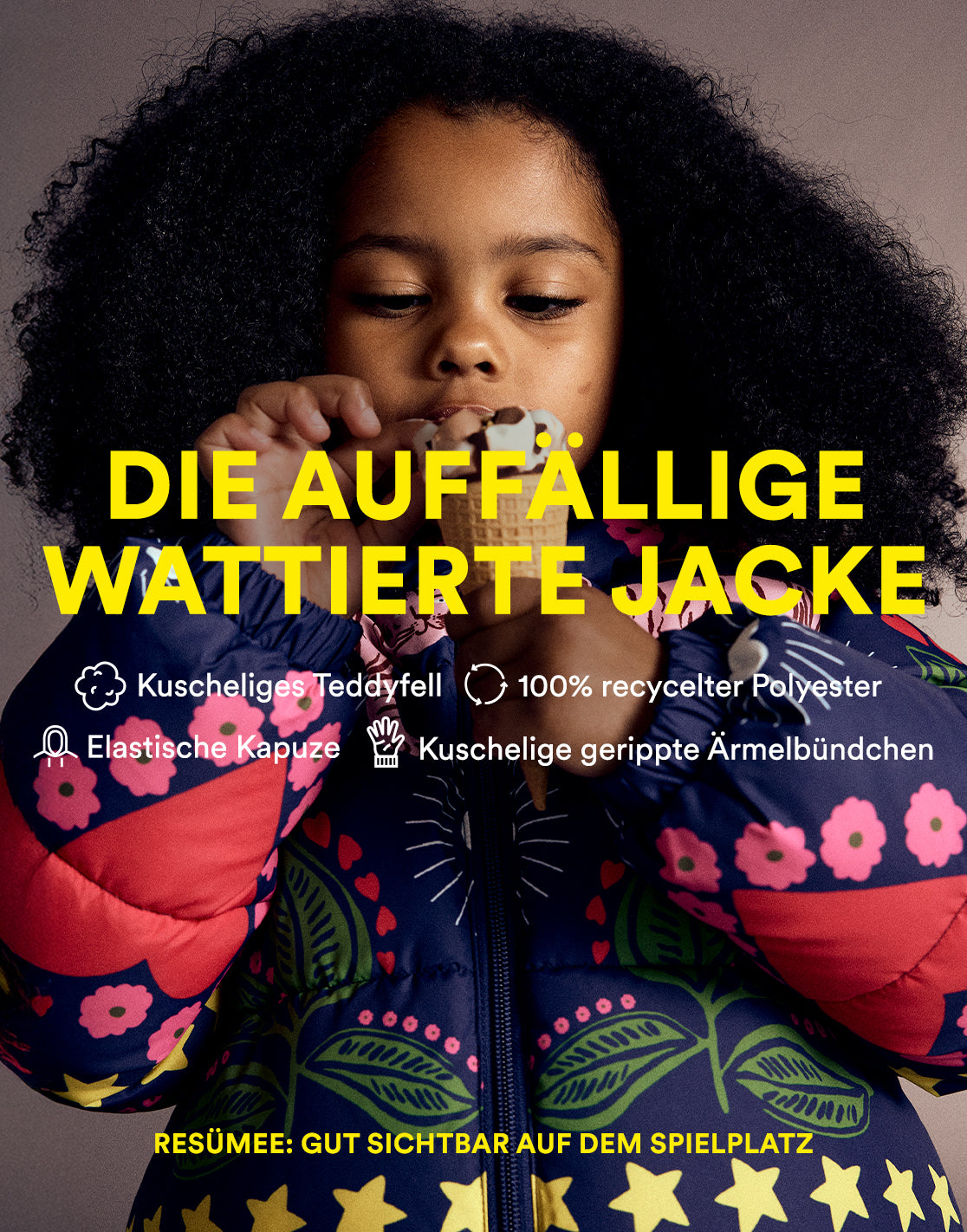 Es gibt kein schlechtes Wetter, nur unpassende Kleidung. Wenn eine Jacke so hart arbeitet, können Minis sich voll und ganz auf das Spaßhaben im Schietwetter konzentrieren.