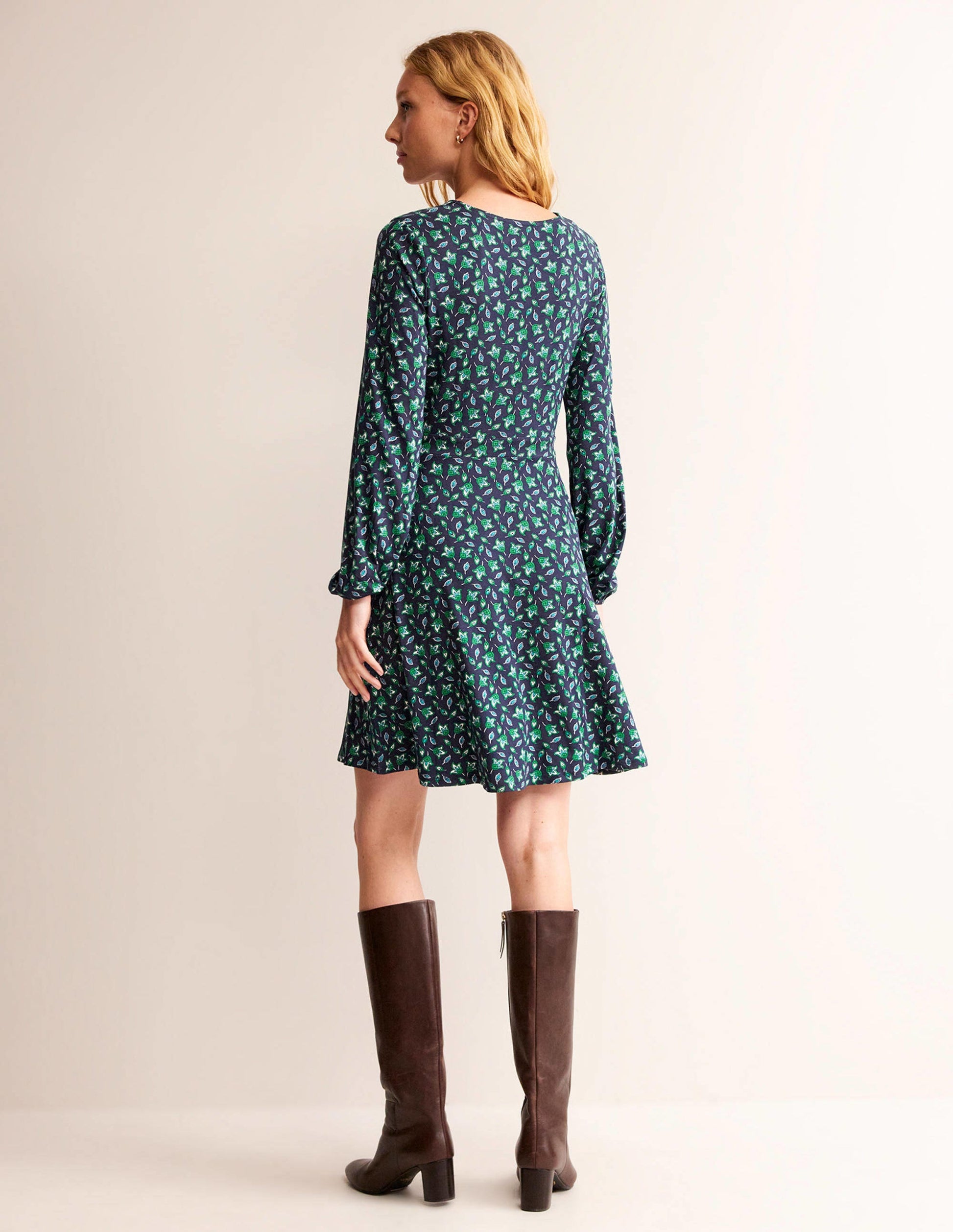 Willow Jersey-Kleid Französisches Marineblau, Tulpenknospe